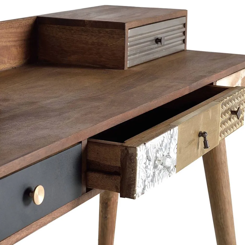 - Klasse Schreibtisch in Mangoholz und Naturtönen