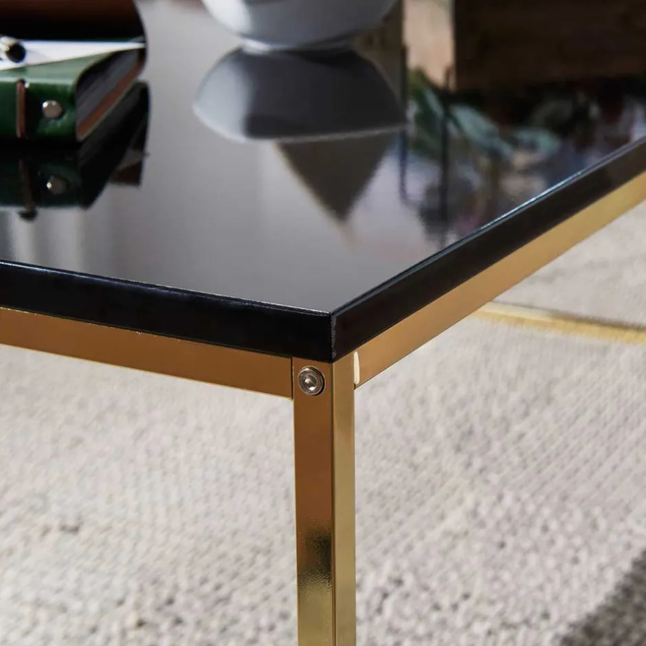 - Eleganter Couchtisch in Goldfarben und Hochglanz Schwarz