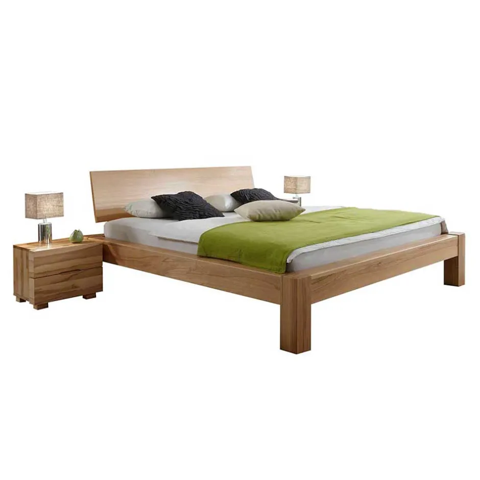 - Klassiches Bett in Kernbuchefarben mit Nachtkommoden