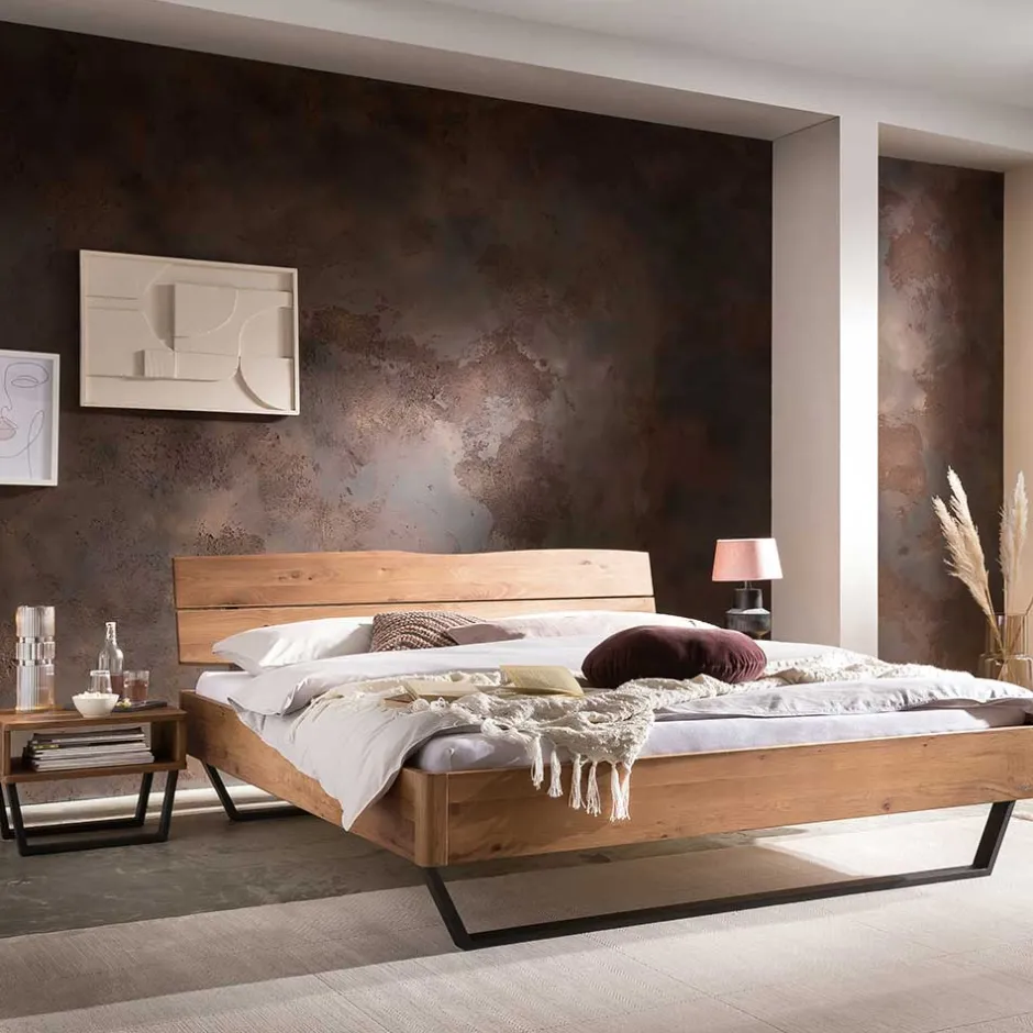 - Robustes Bett in Wildeichefarben und Anthrazit