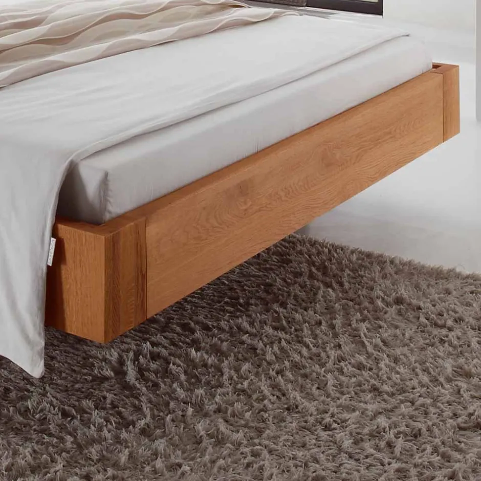 - Zurückgesetztes Kufengestell für eine schwebende Optik des Bettes