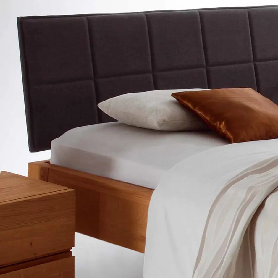- Gepolstertes und gestepptes Kopfteil mit grauem Stoffbezug aus 100% Polyester