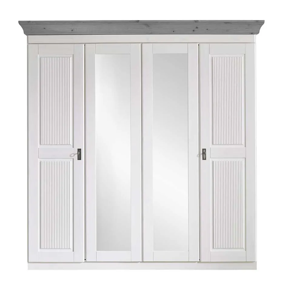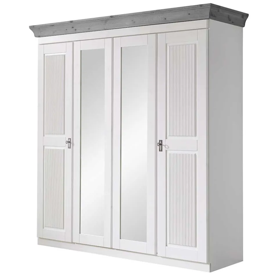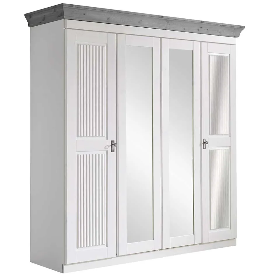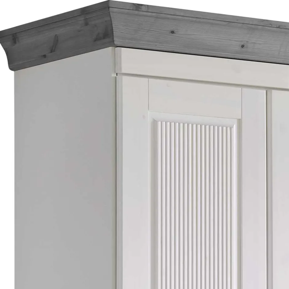 - Attraktiver Kleiderschrank in Weiß und Kiefer grau