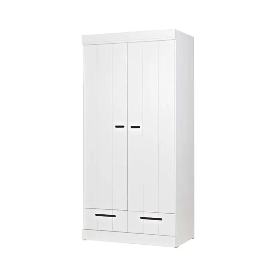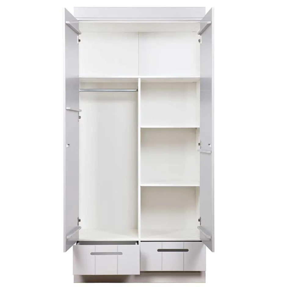 - Links eine Kleiderstange, rechts zwei Einlegeböden, oben ein durchgehender Hutboden