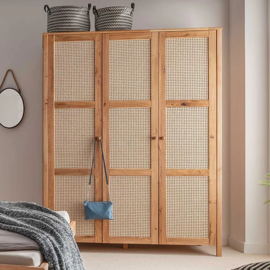 - Aus Wildeiche Massivholz und Rattan hergestellt