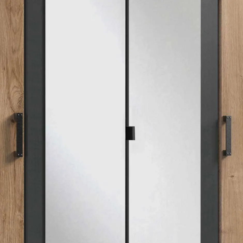 - Kontraststarker Kleiderschrank in Plankeneiche Holzoptik und Dunkelgrau