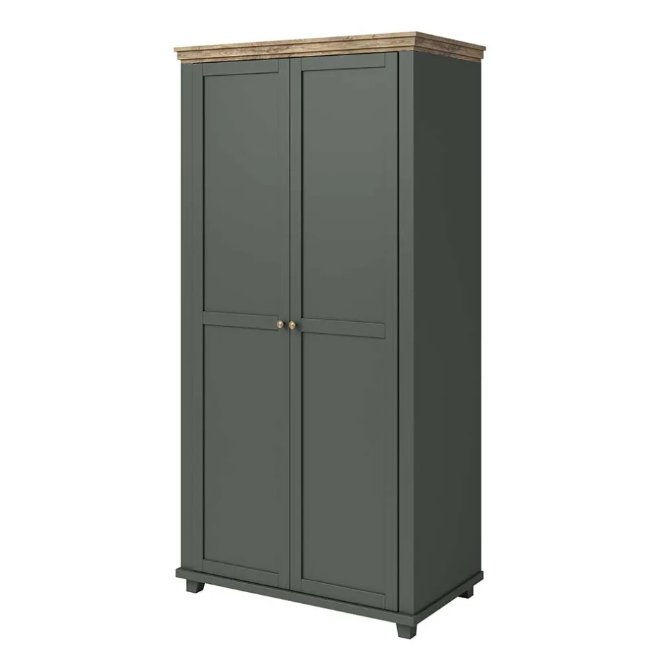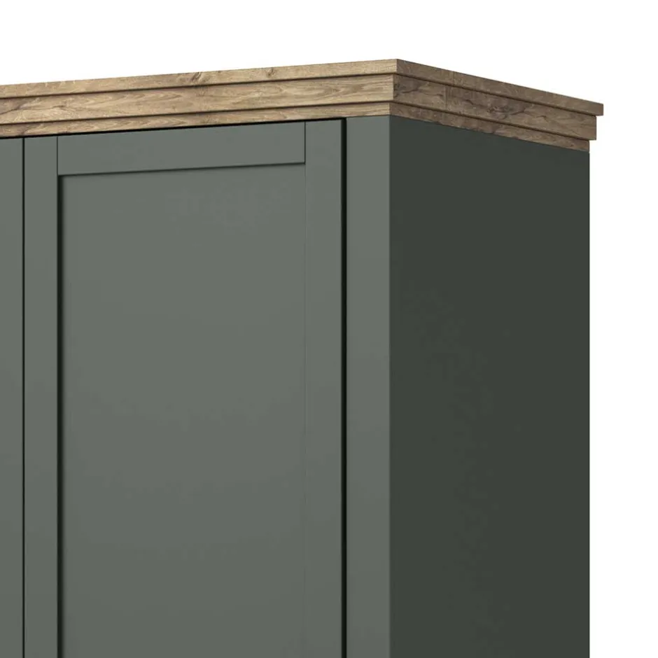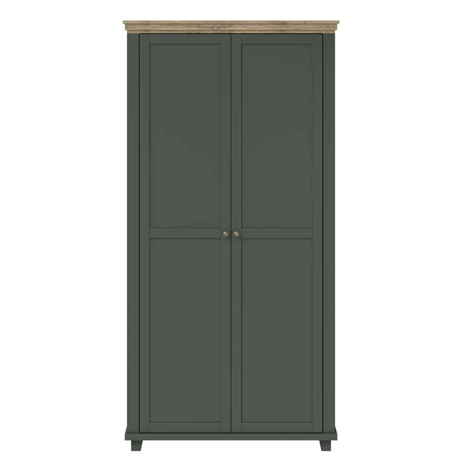 - Attraktiver Kleiderschrank in Dunkelgrün und verwitterter Holzoptik