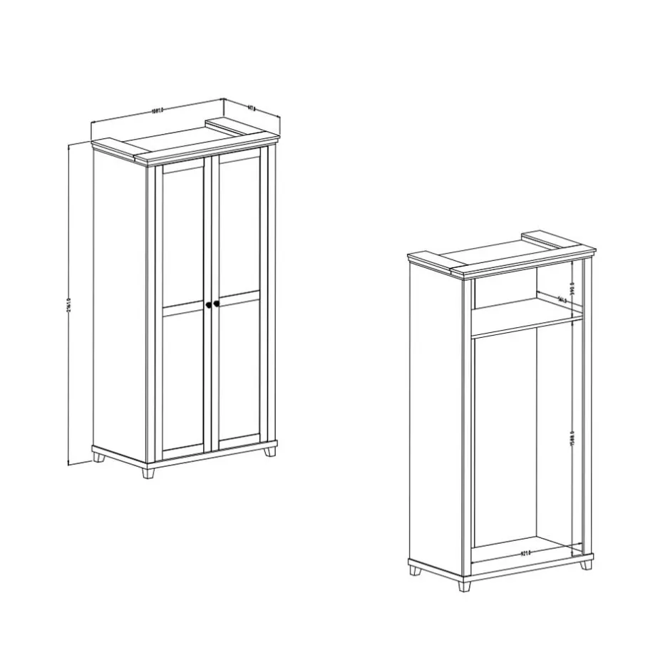 - Mit einer festen Kleiderstange und einem Einlegeboden