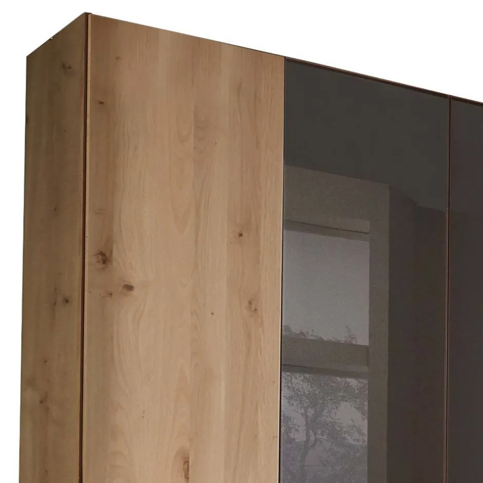 - Großzügiger Kleiderschrank in Dunkelbraun und Eiche Bianco teilmassiv mit Ästen