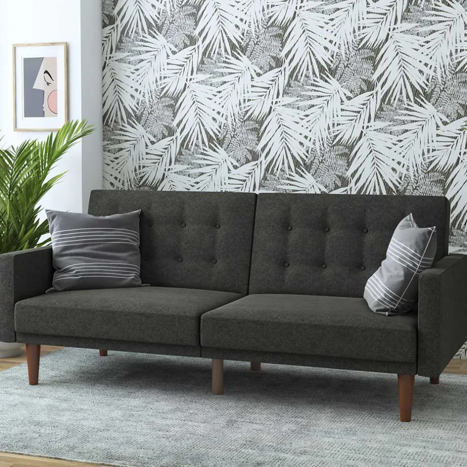 - Schlichtes Schlafsofa in Grau und Kirschbaumfarben