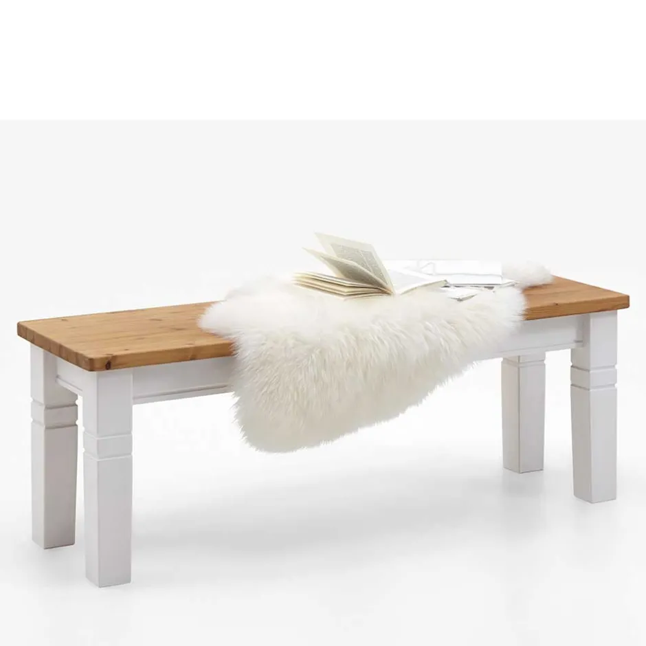 - Sitzflächen in Kiefer Laugenfarben, Gestell und Lehne in Weiß