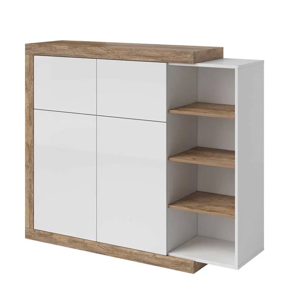 - Smartes Highboard in Weiß und Holzoptik Eiche verwittert