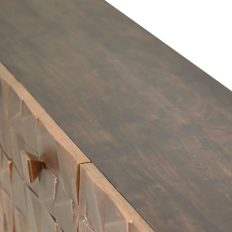 - Plastisch gestaltete Front, Oberflächen von Türen und Schubladen höchst dekorativ mit Metall beschichtet