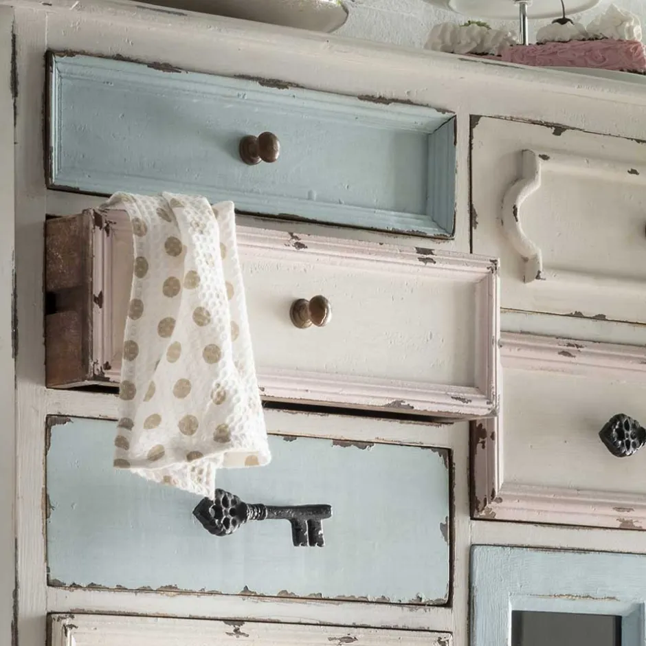 - Einzigartige Patina, lackierte Holzoberfläche mit Antik-Finish und Gebrauchspuren