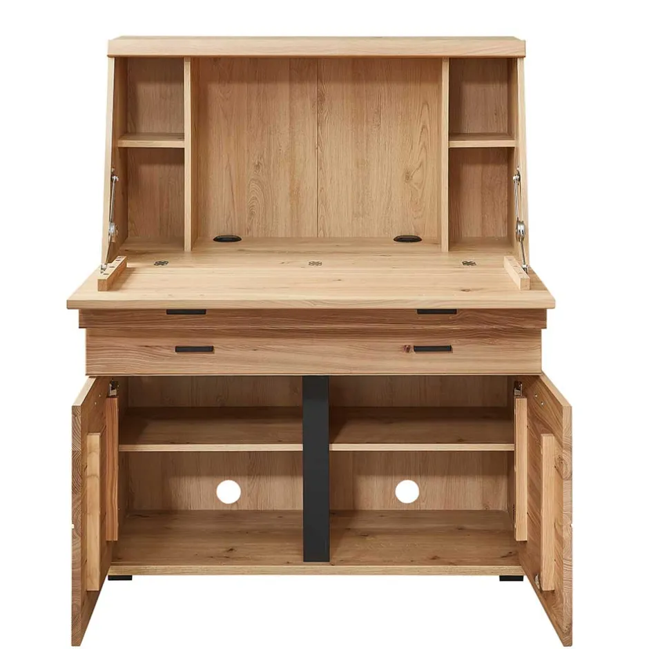 - Dieser moderne Sekretär in Eschefarben (Front) und Wildeichefarben (Korpus) sowie Schwarz ist ein echter Hingucker