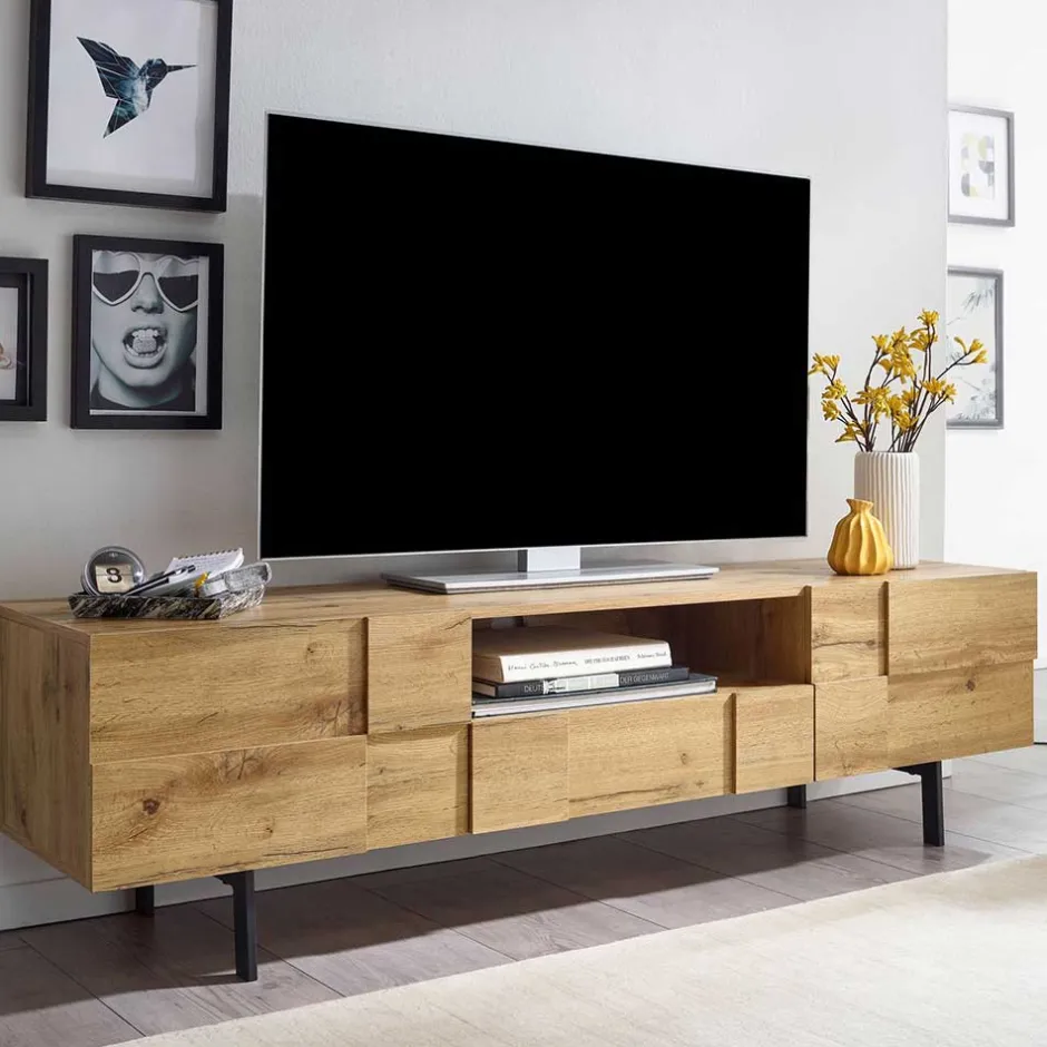 - Attraktives TV-Lowboard in Eichefarben und Schwarz