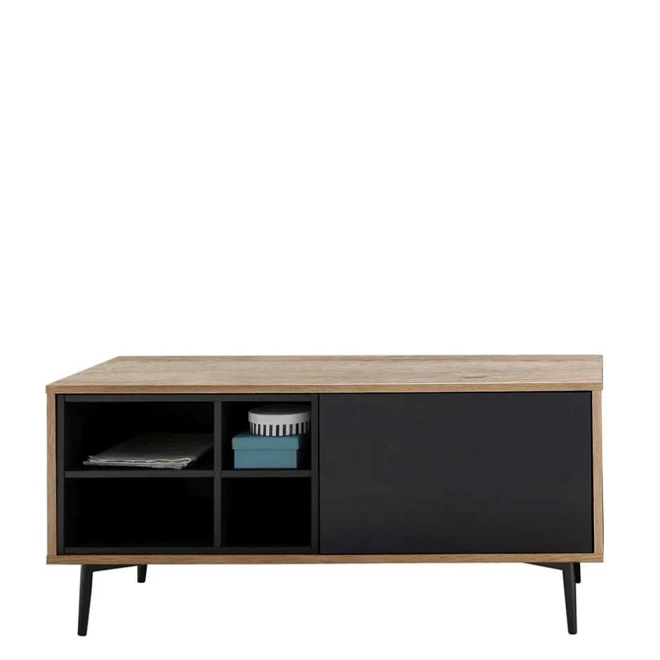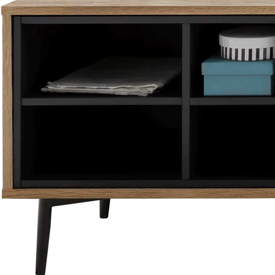- Attraktives TV-Lowboard in Anthrazit und Holz Naturfarben