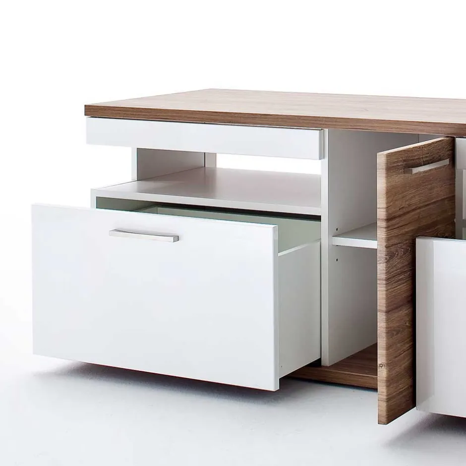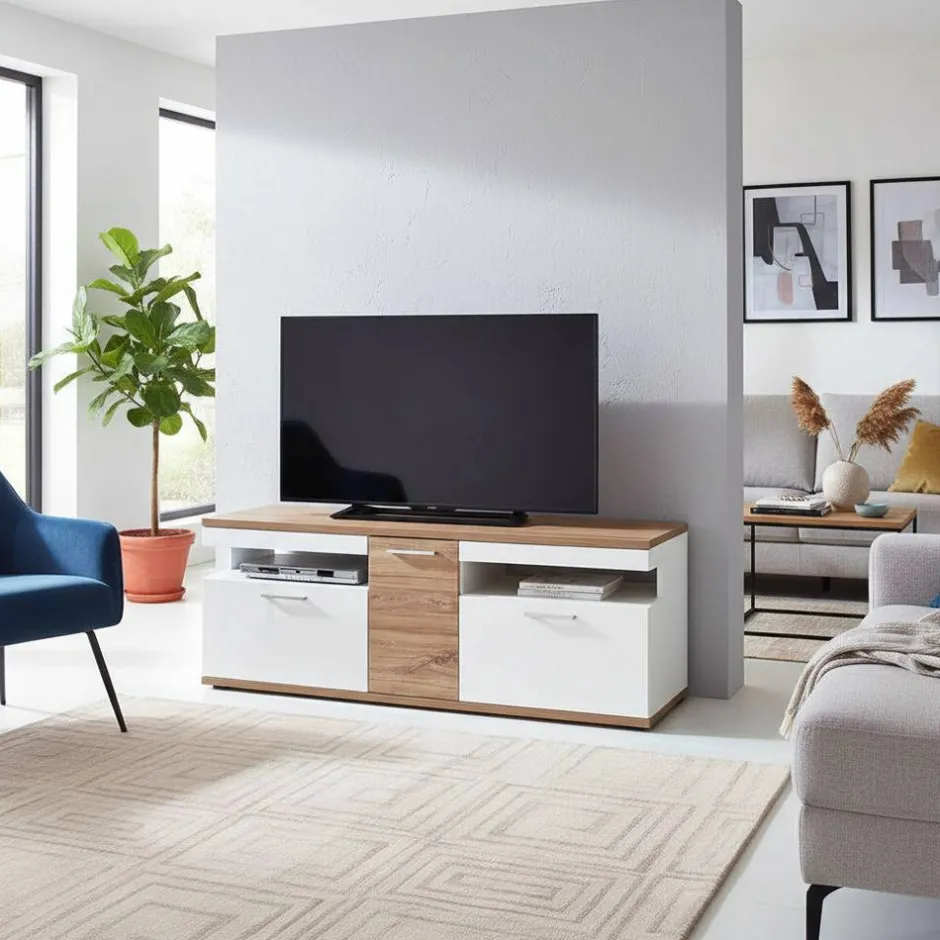 - Edles TV-Board in Weiß und Eichefarben