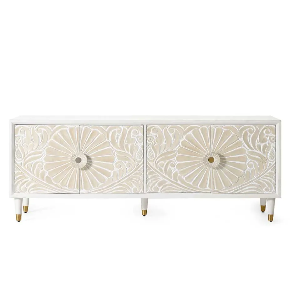 - Schickes Lowboard in Weiß-Cremeweiß und Goldfarben