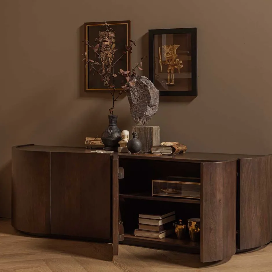 - Oberflächen dunkelbaun lackiert, durchscheinende Maserung