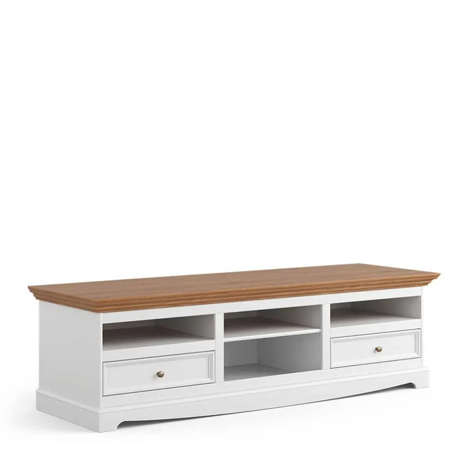 - Ansprechendes TV Lowboard in Weiß und Eichefarben