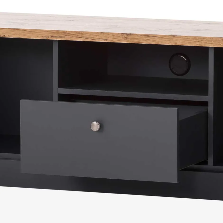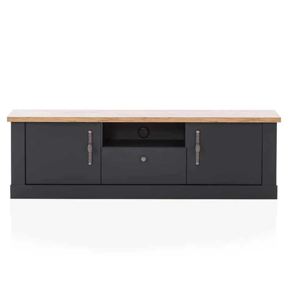 - Geräumiges TV Lowboard in Anthrazit und Wildeichefarben