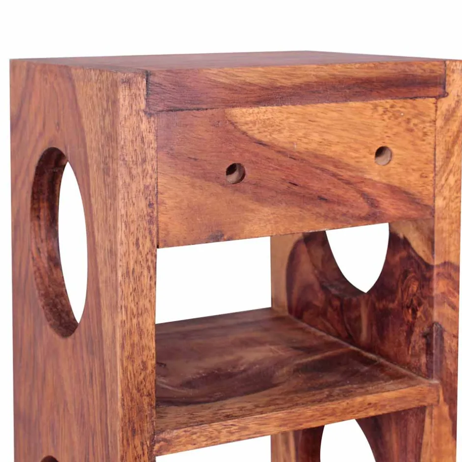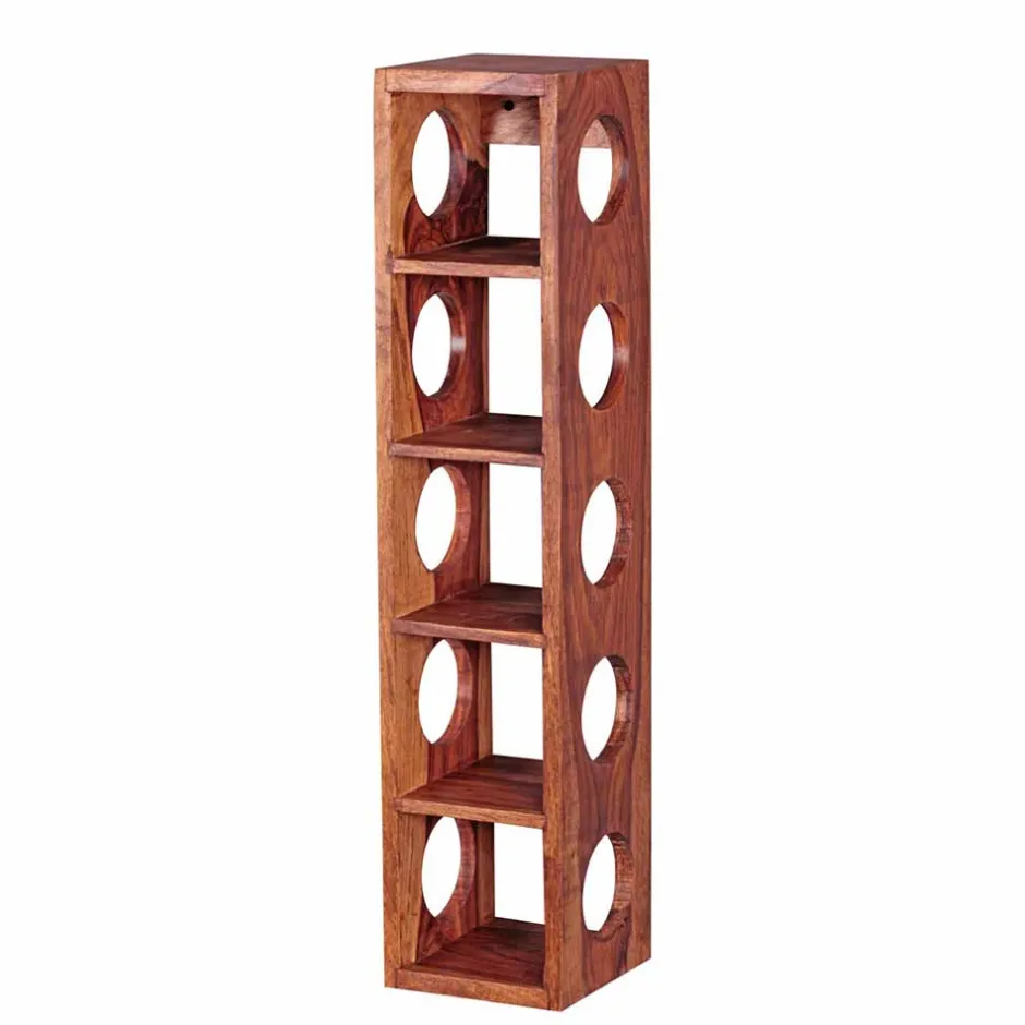 - Regal bietet fünf offene Ablagefächer mit Öffnungen für fünf Weinflaschen