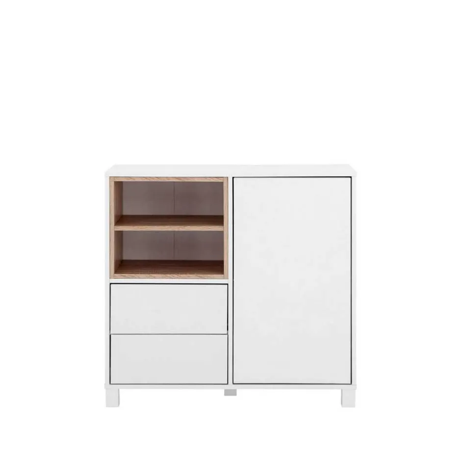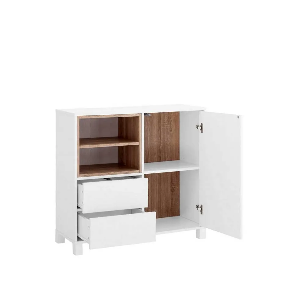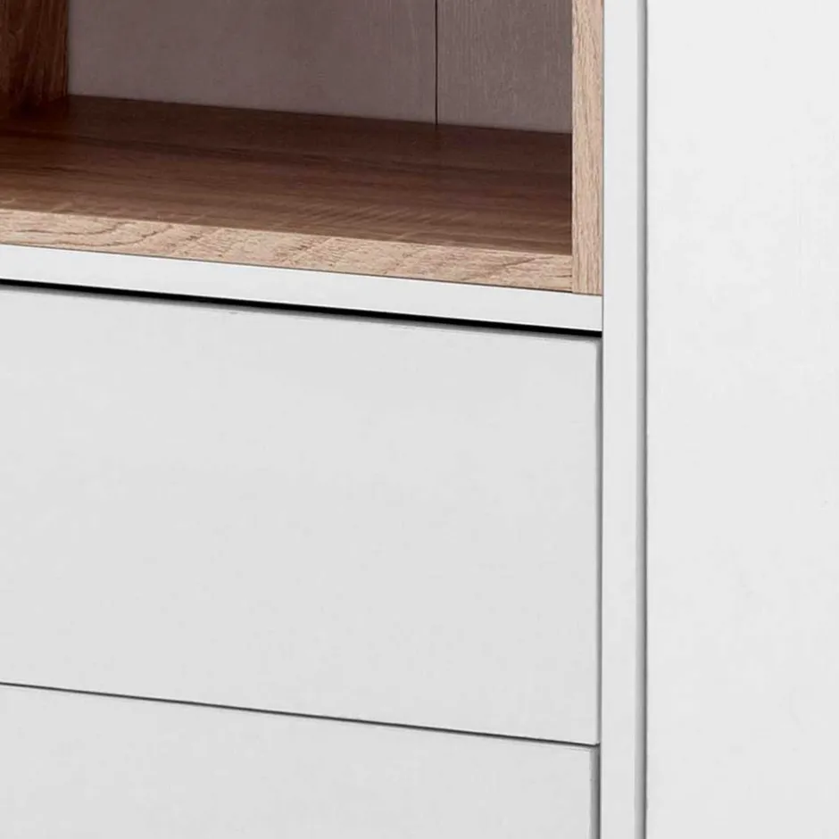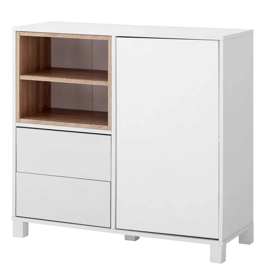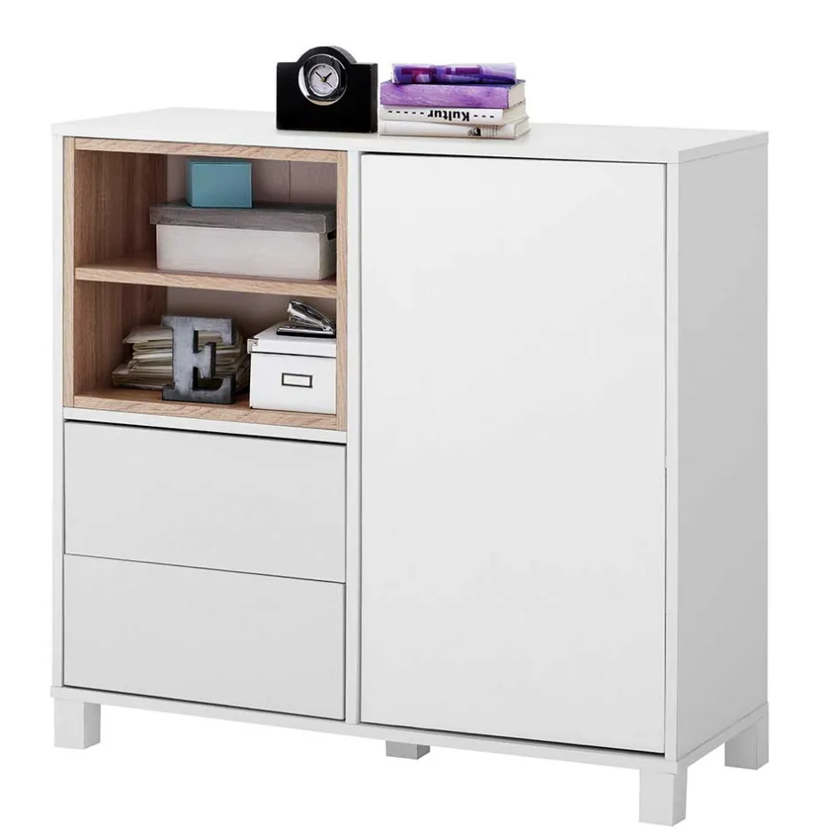 - Geräumige Kommode in Weiß und Eichefarben