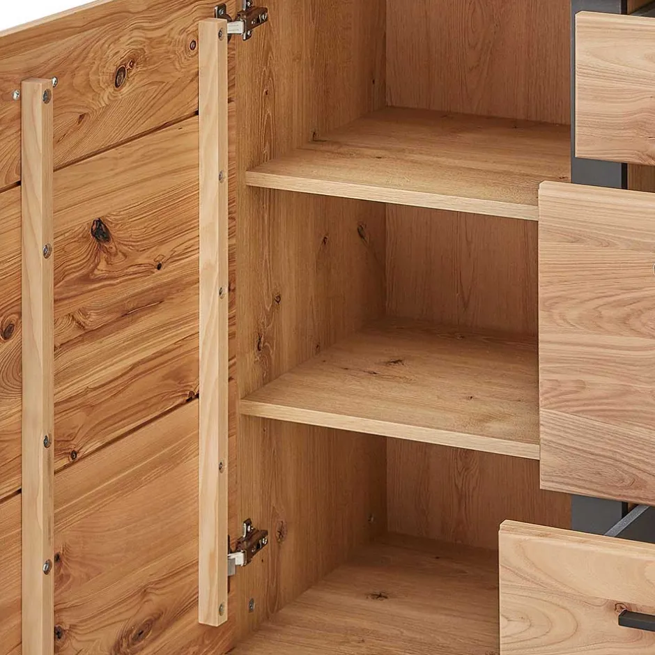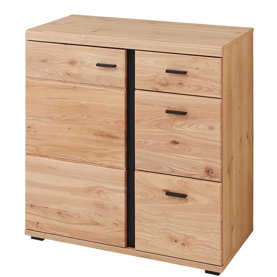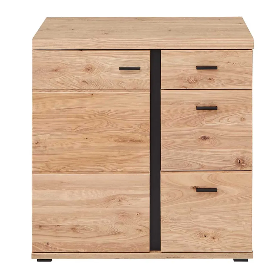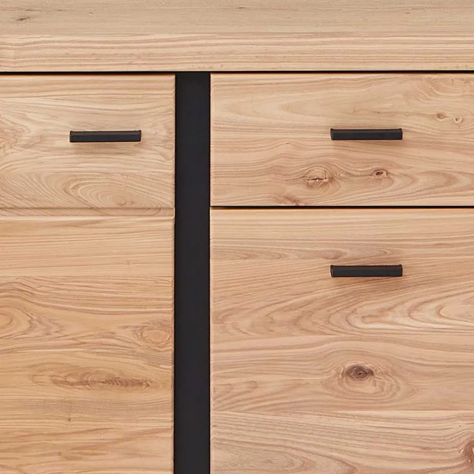 - Modern präsentiert sich dieses Möbelstück in Eschefarben (Front) und Wildeichefarben (Korpus) sowie Schwarz