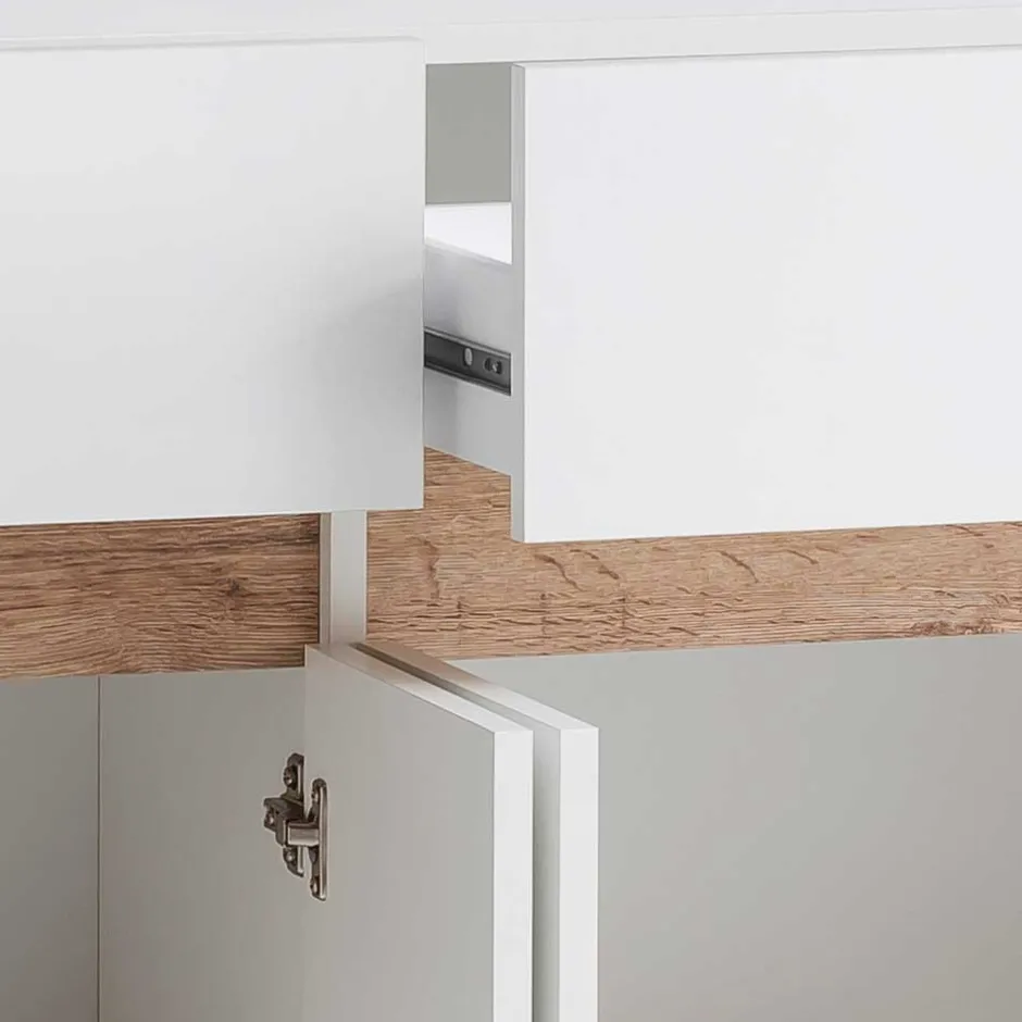 - Bildschönes Sideboard in Weiß und Wildeichefarben