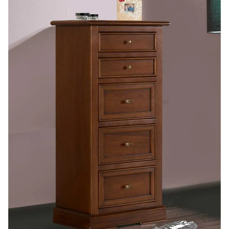 - Fünf geräumige Schubladen mit praktischem Holzauszug bieten viel Stauraum
