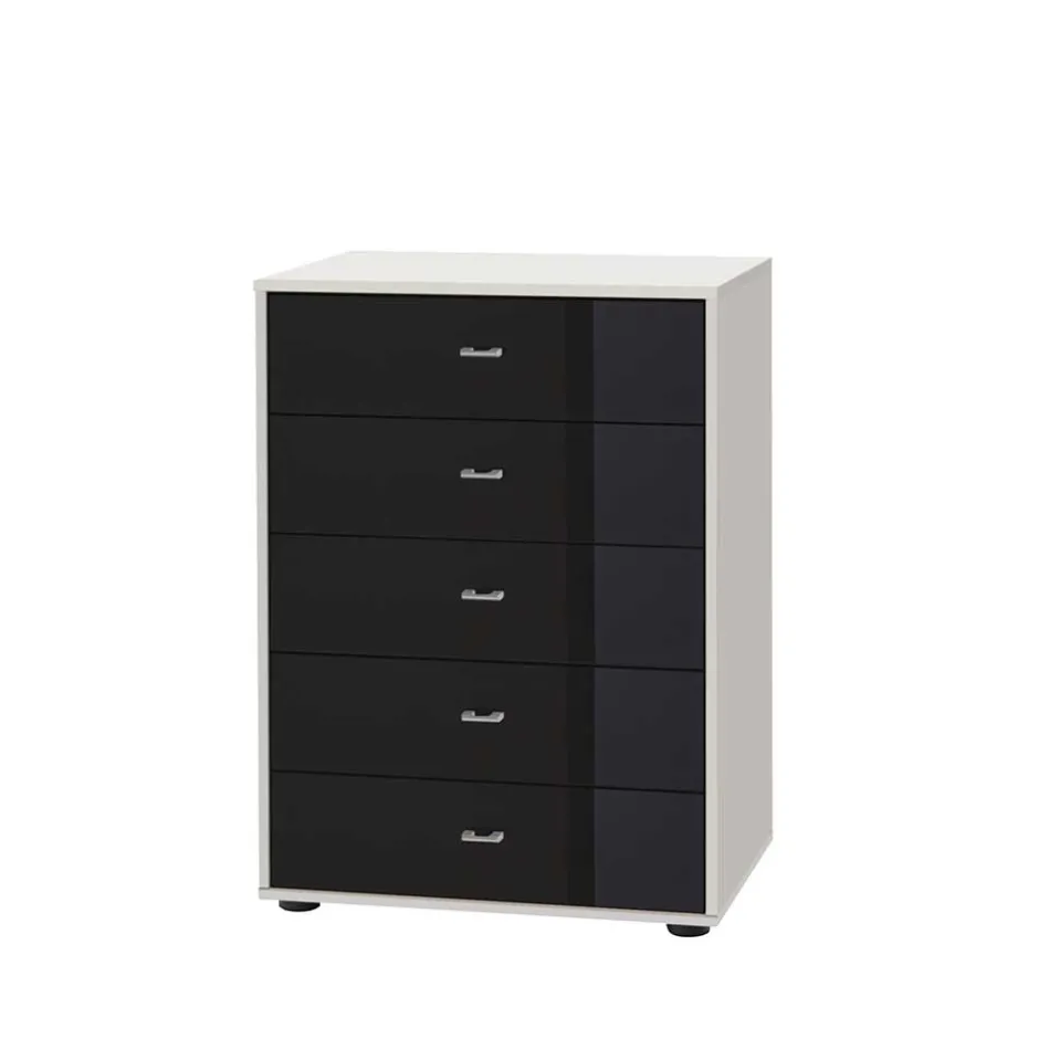 - Weiße Oberflächen foliert, Schubkastenfronten mit Glas beschichtet
