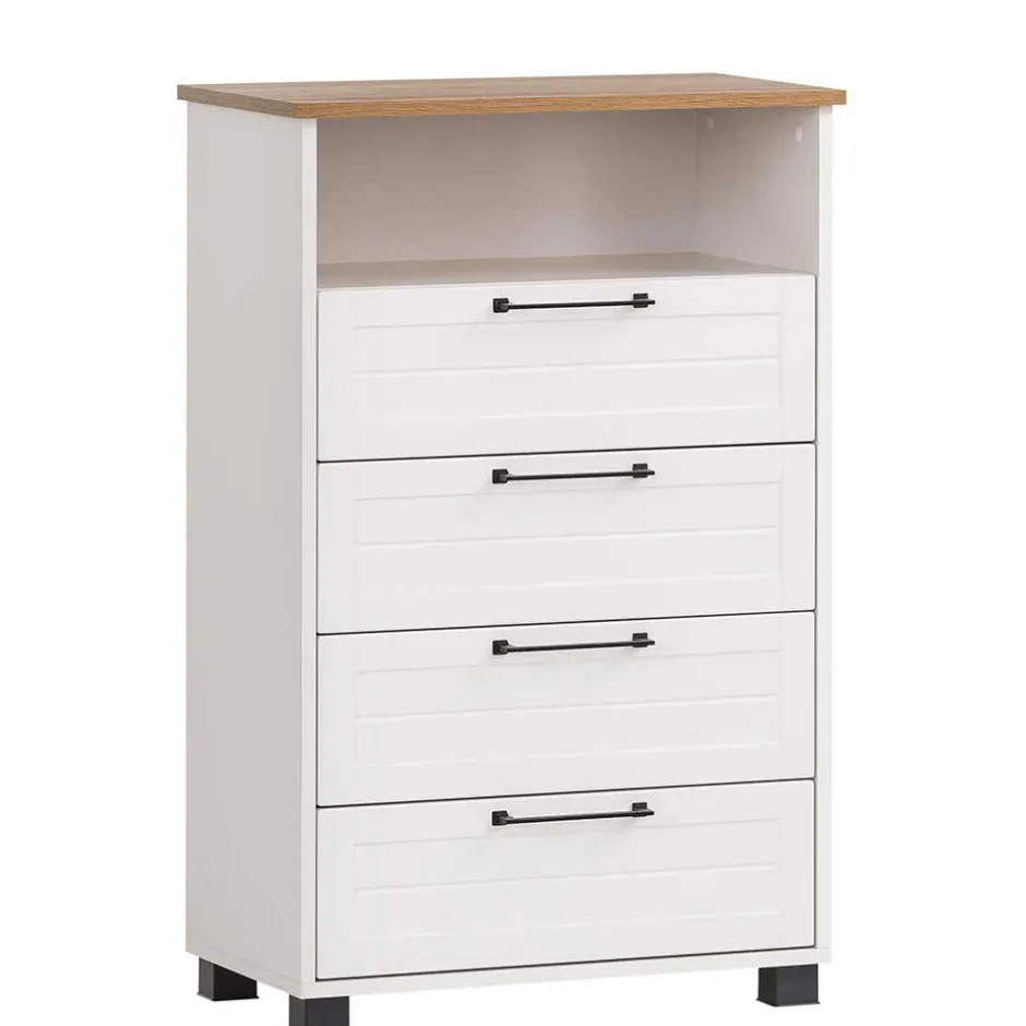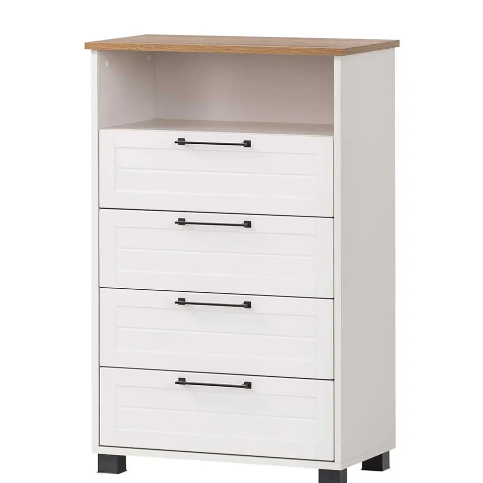 - Geräumiges Highboard in Weiß und Eichefarben