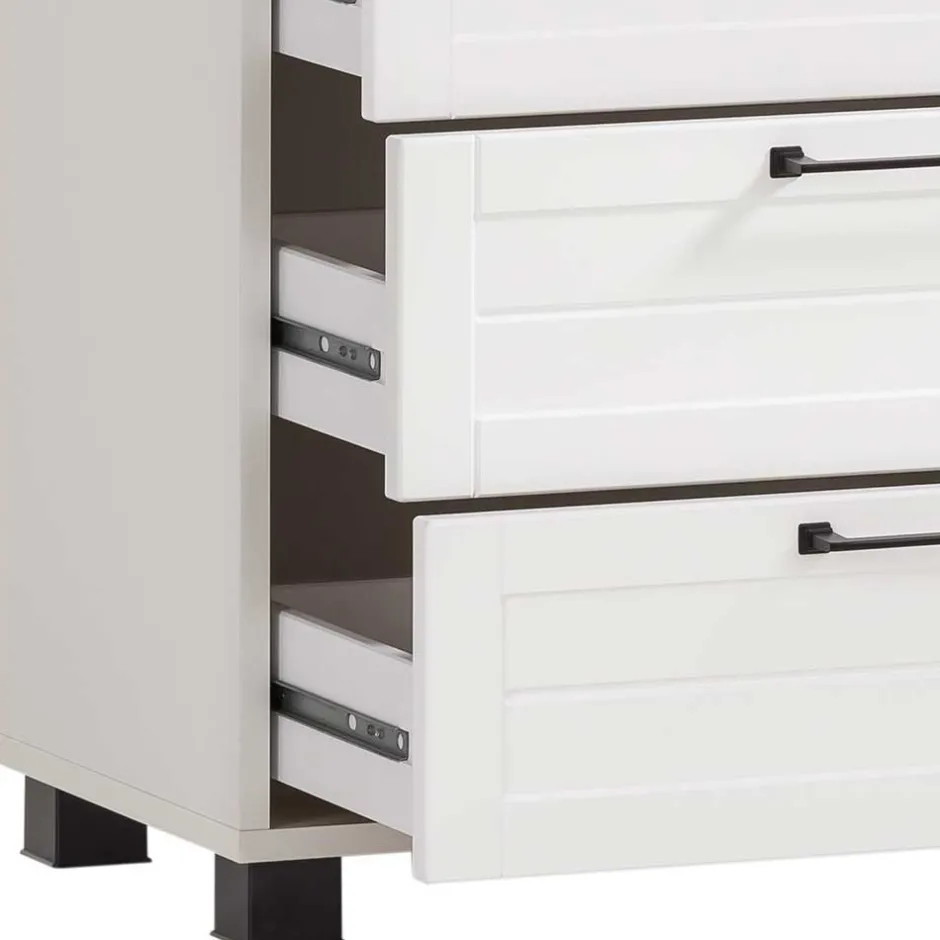 - Vier Schubladen mit Metallauszug (Teilauszug), Innenmaße: BxHxT: je ca. 53,2×14,5×25,8 cm