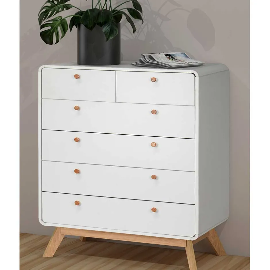 - Geräumige Kommode in Weiß und Eichefarben