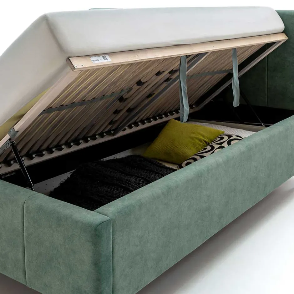 - Die belüfteten Bettkästen bieten viel Stauraum, Lattenroste seitlich per Gasdruckfedern hochklappbar