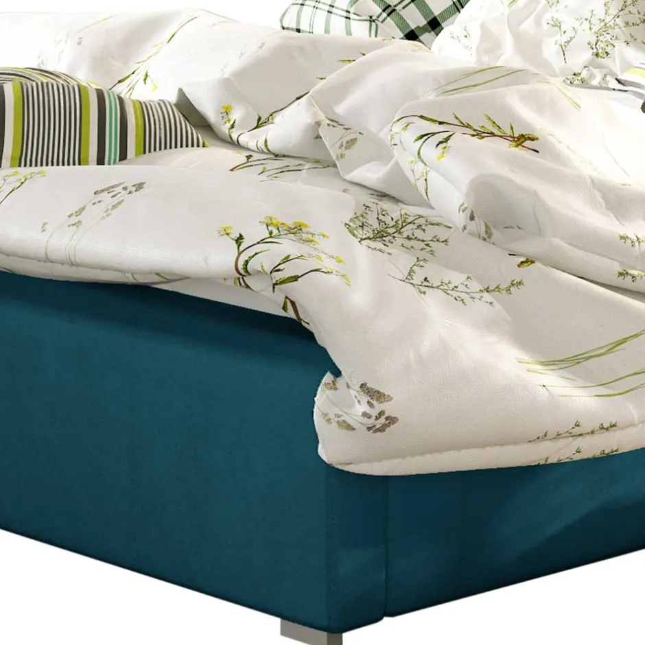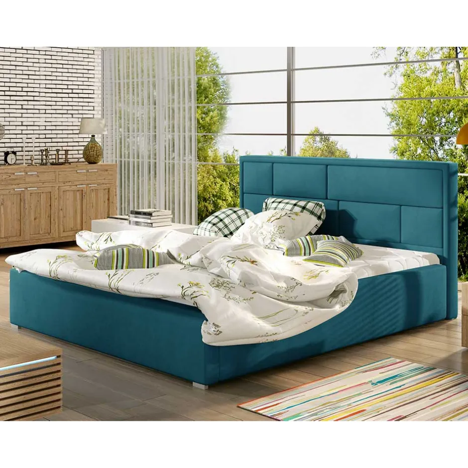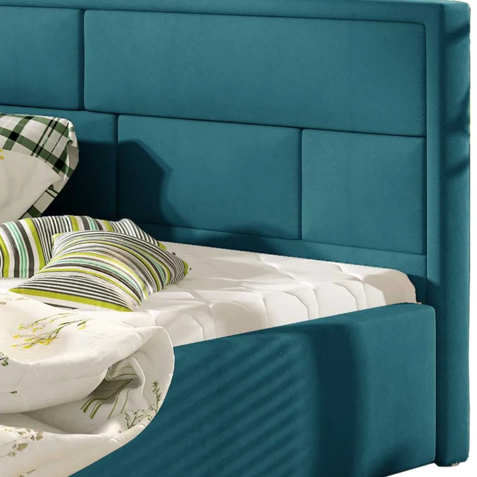 - Ein geräumiger Bettkasten, der in zwei Teile unterteilt ist, Öffnung mit Gaslift Funktion am Fußende