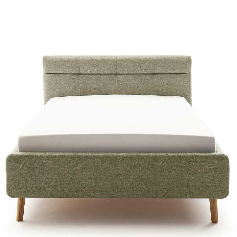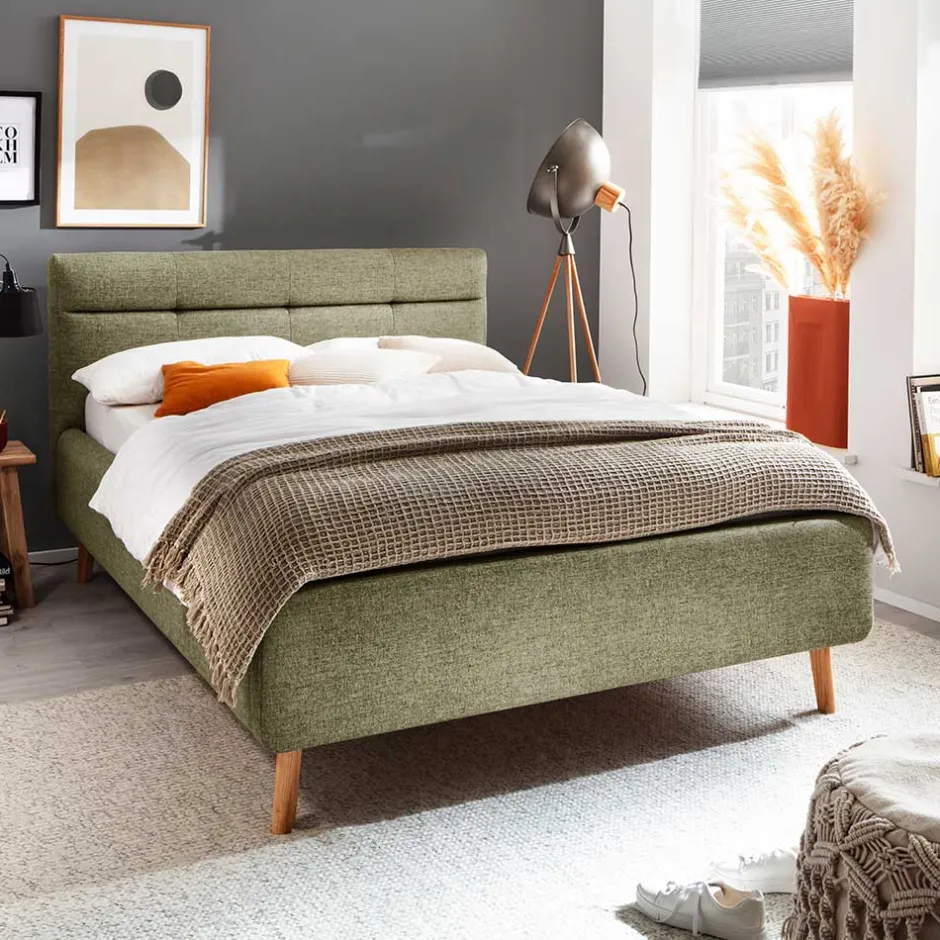 - Trendgemäßes Polsterbett in Grün und Eichefarben