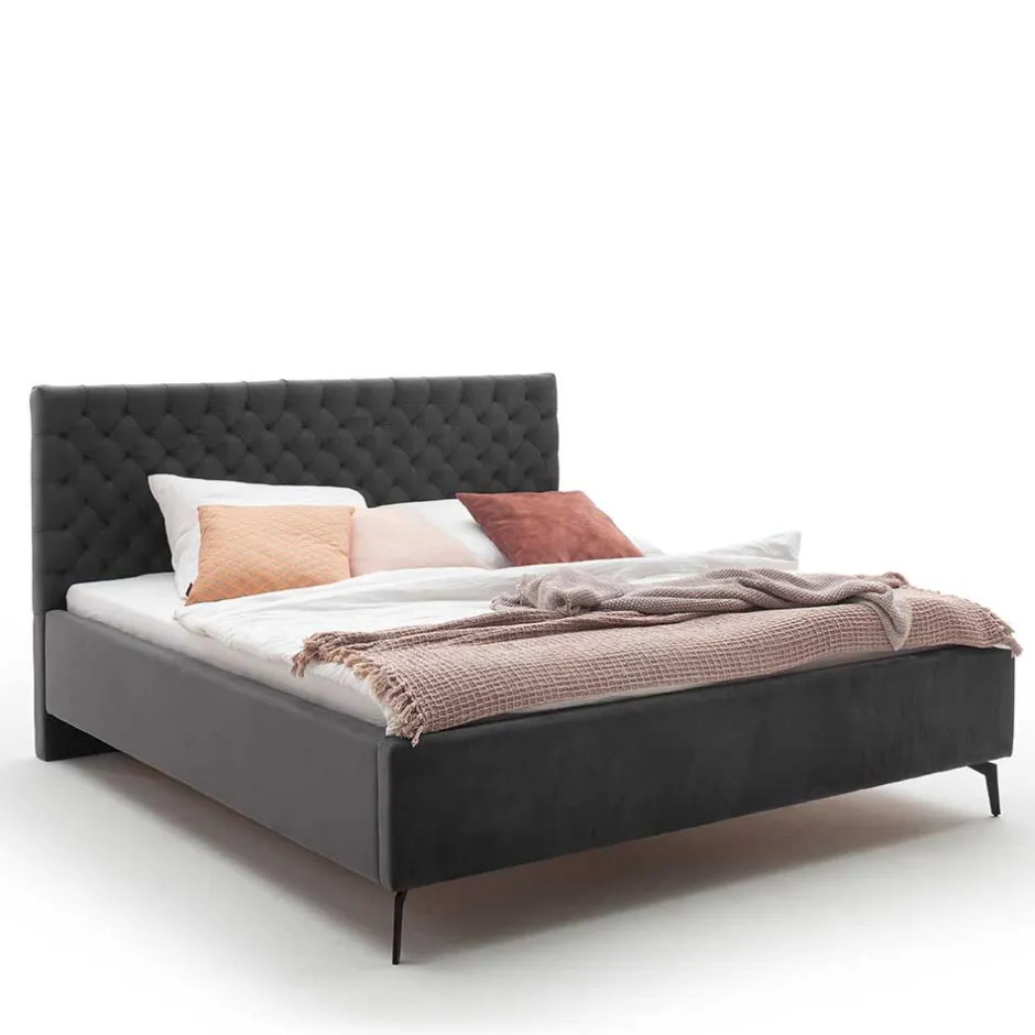 - Ansprechendes Polsterbett in Anthrazit und Dunkelgrau