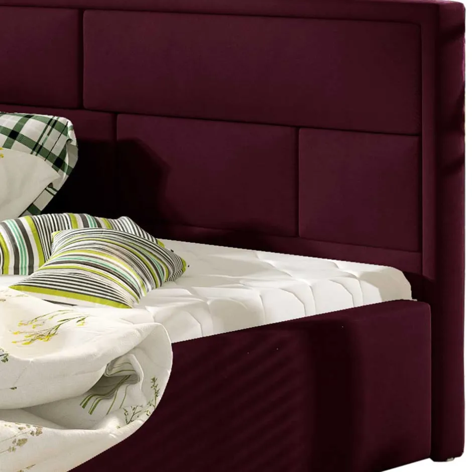 - Ein geräumiger Bettkasten, der in zwei Teile unterteilt ist, Öffnung mit Gaslift Funktion am Fußende