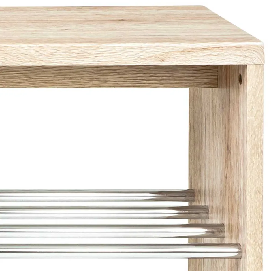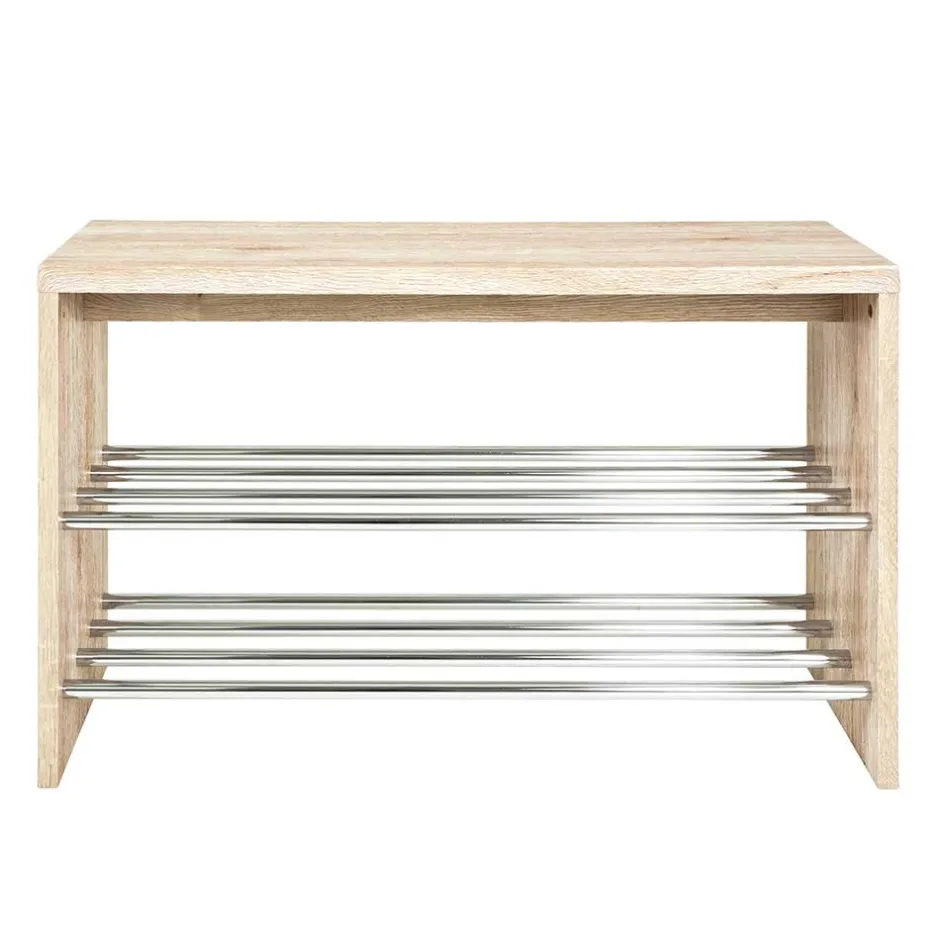 - Zwei Schuhablageflächen aus modernem Stahlrohr