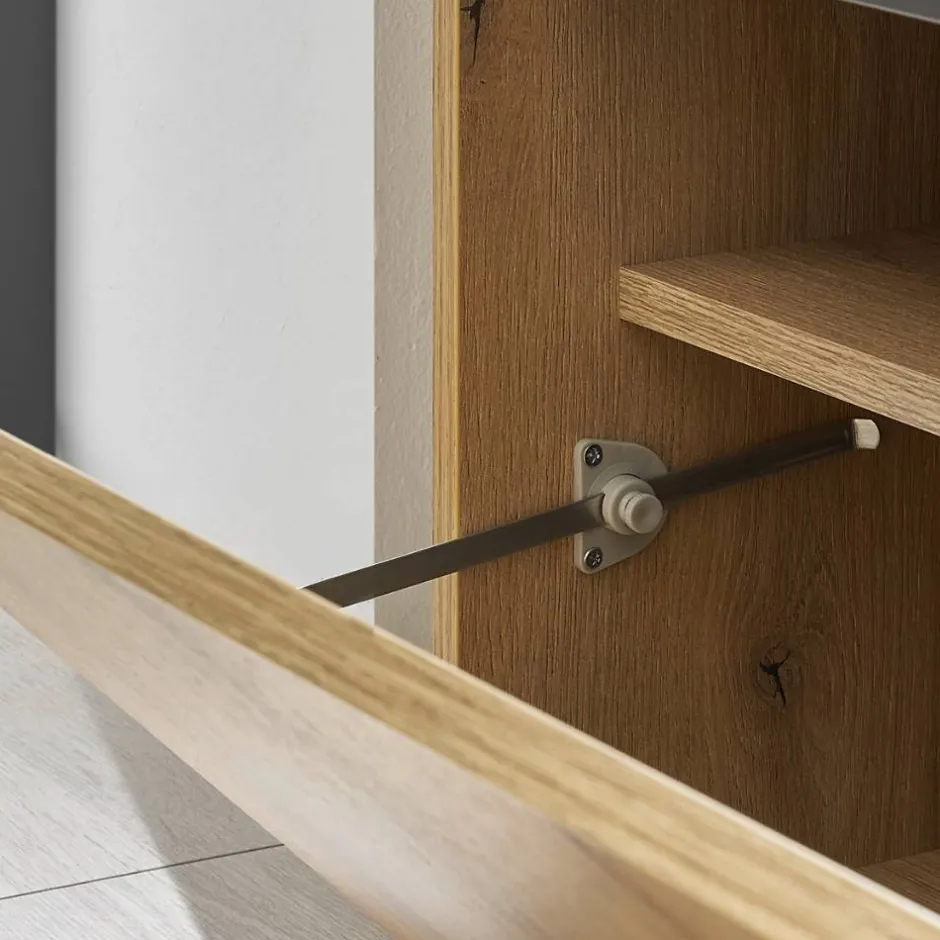 - Eine Schuhklappe, innen vier Fächer, Platz für bis zu acht Paar Schuhe