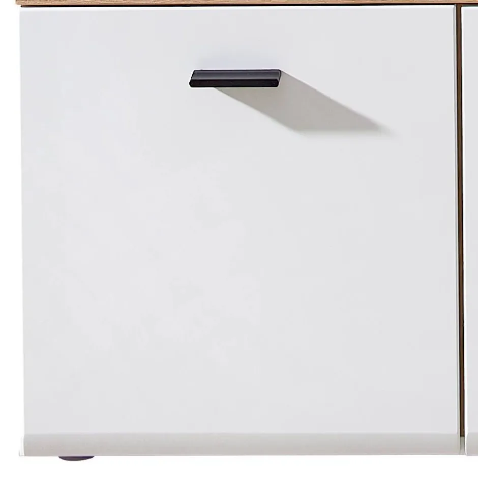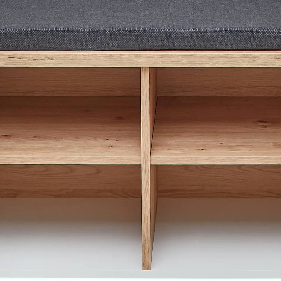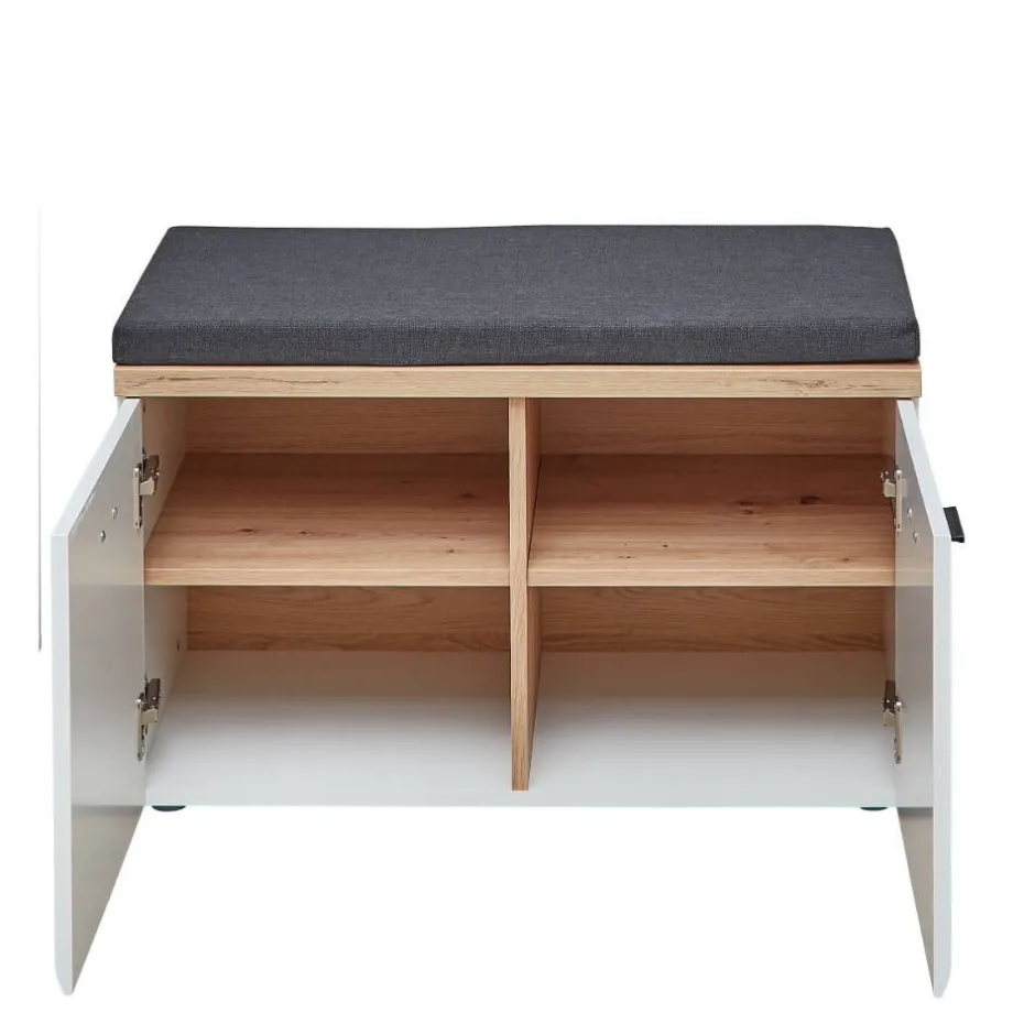 - Kompakte Garderobenbank in Weiß, Weiß matt und Wildeichefarben
