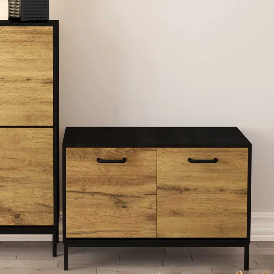 - Schicke Garderobenbank in Wildeichefarben und Schwarz