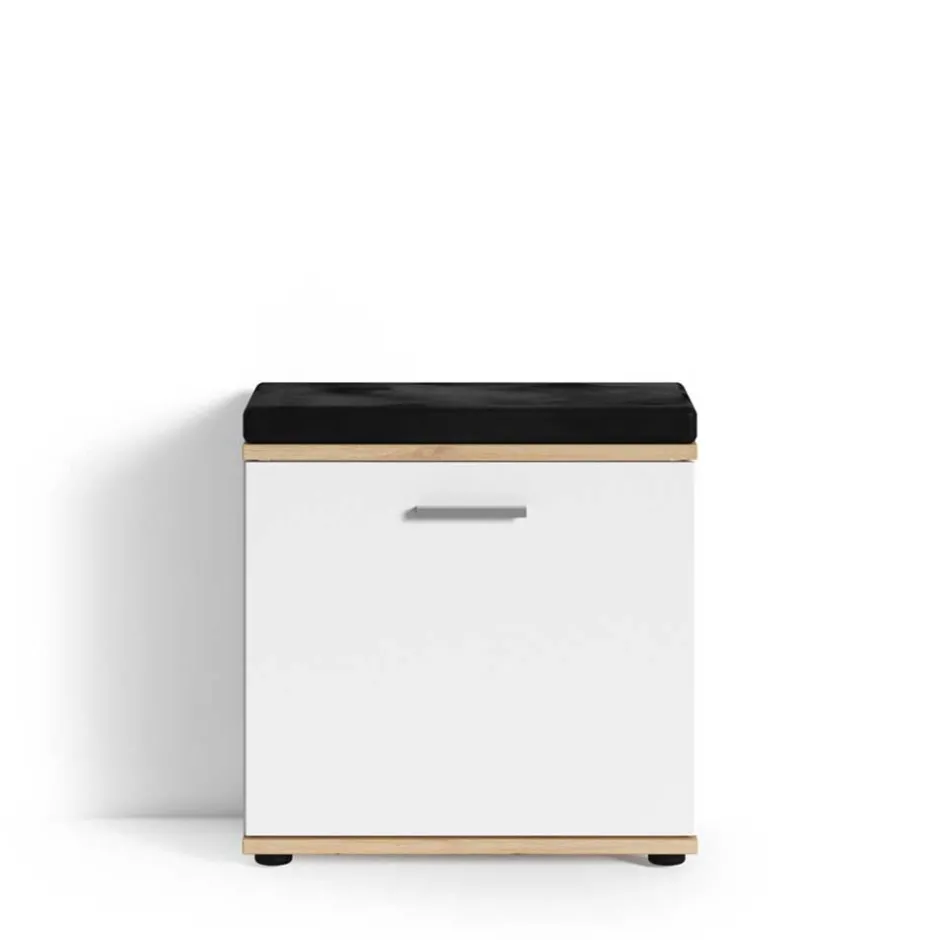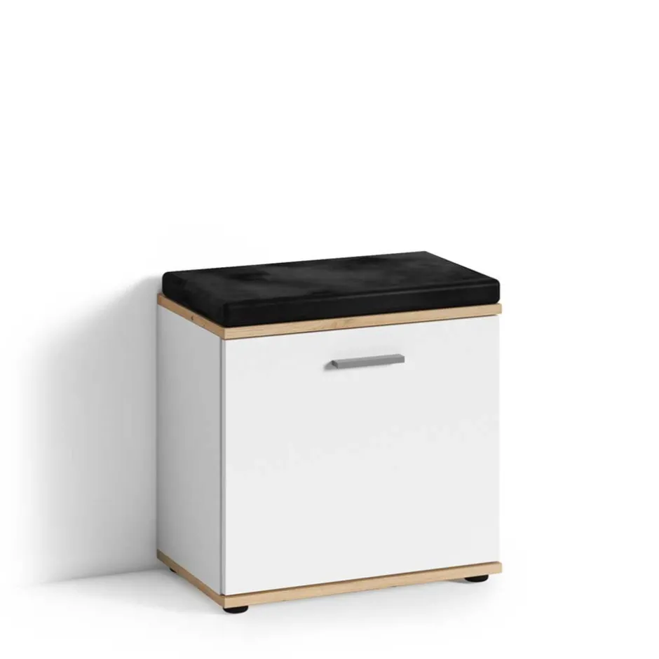- Ansprechende Garderobenbank in Weiß und Wildeichefarben
