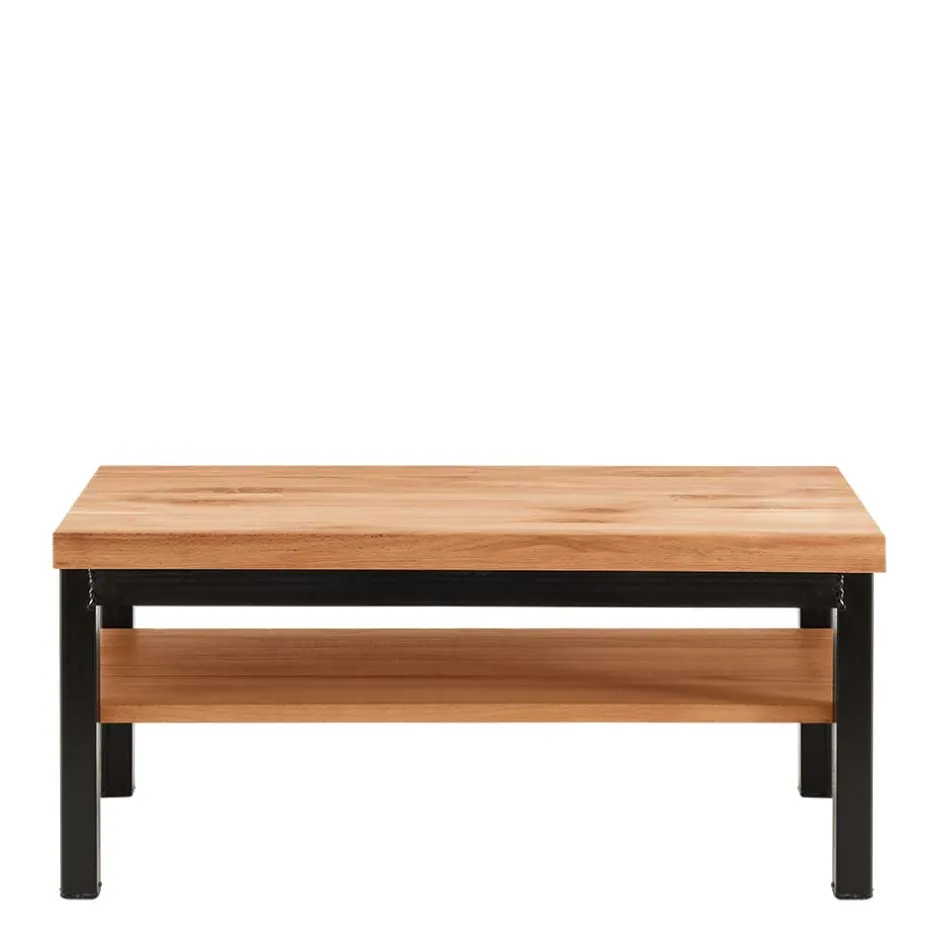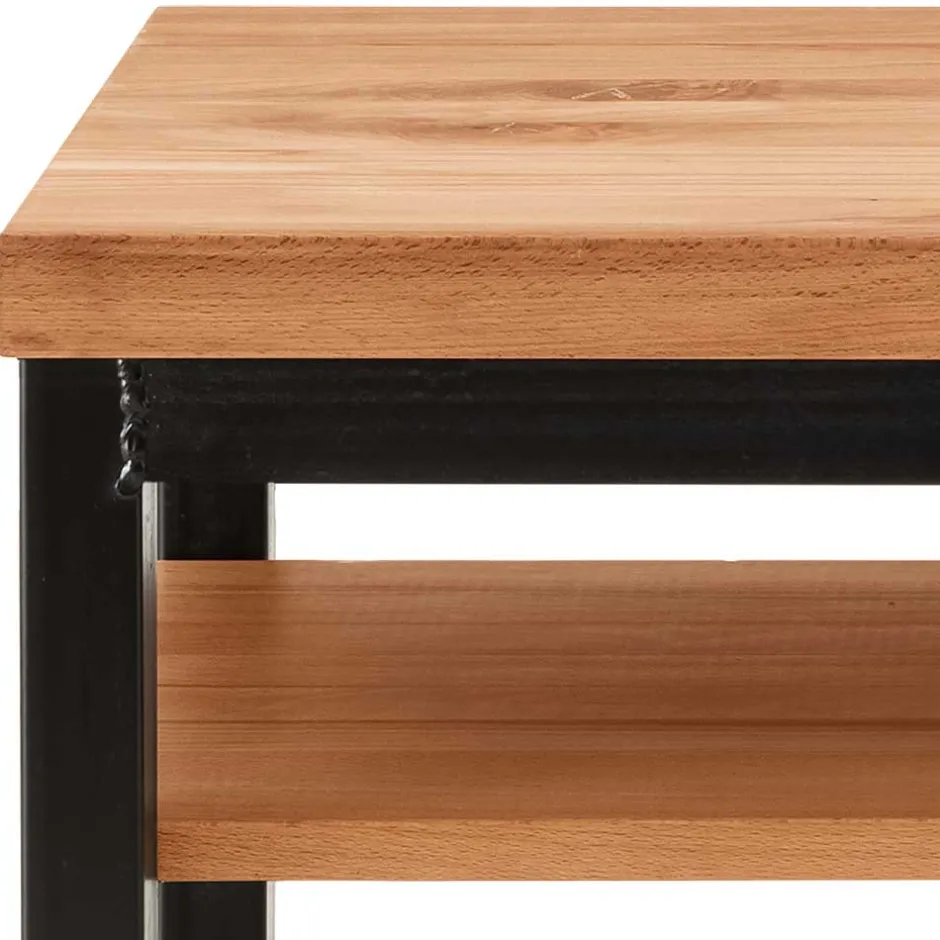 - Holzoberfläche natürlich geölt, Metall mit groben Schweißnähten und Gebrauchsspuren