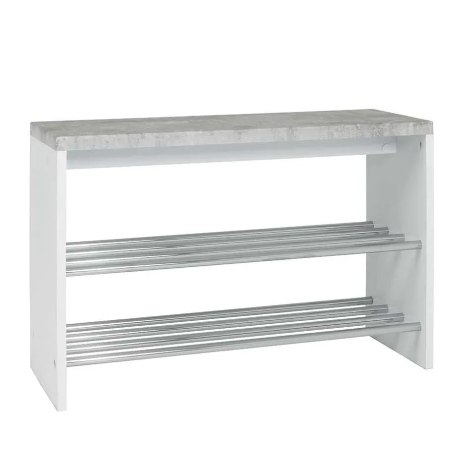 - Praktische Garderobenbank in Weiß, Beton Grau und Chromfarben