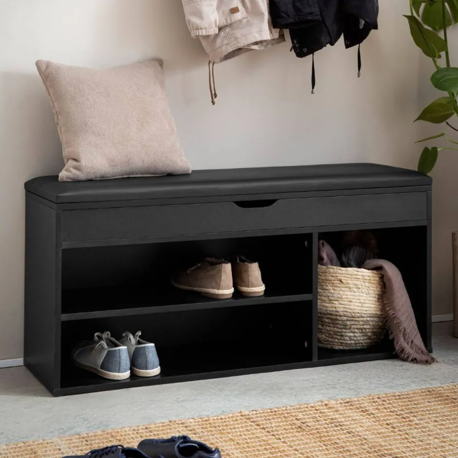 - Deckel hochklappbar, darunter praktischer Stauraum