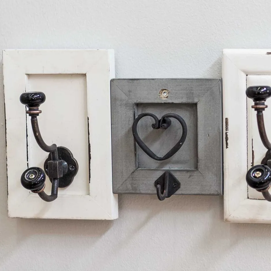 - Drei große Doppel- und zwei kleine Kleiderhaken aus Metall