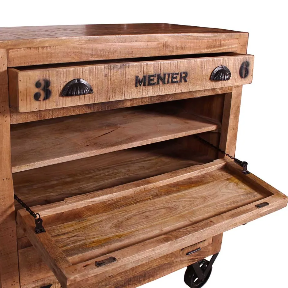 - Pflegeleichte, lackierte und mit Antikfinish versehene Holzoberfläche